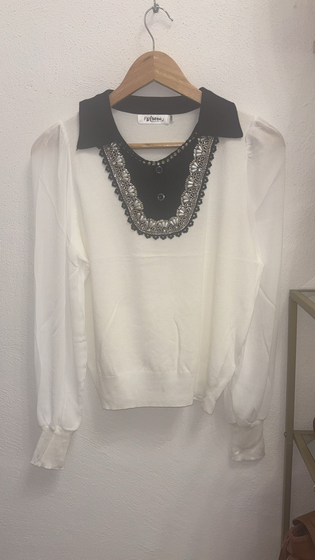 Maglia con dettaglio strass e perline,manica velata